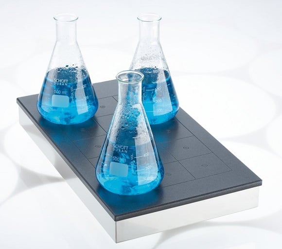 6 karıştırma pozisyonu ve 130 mm karıştırma noktası mesafesi ile 6 x 1000 ml Erlenmeyer şişeleri için uygundur.